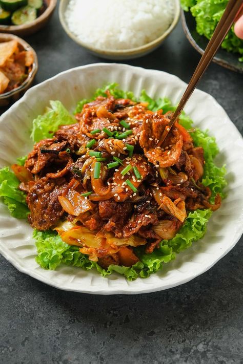 불맛의 핵심은 센 불입니다. 재료를 넣기 전, 팬을 충분히 달궈주세요. 또한 넓은 팬이나 프라이팬을 사용해 고기가 겹치지 않도록 하는 것이 중요합니다.